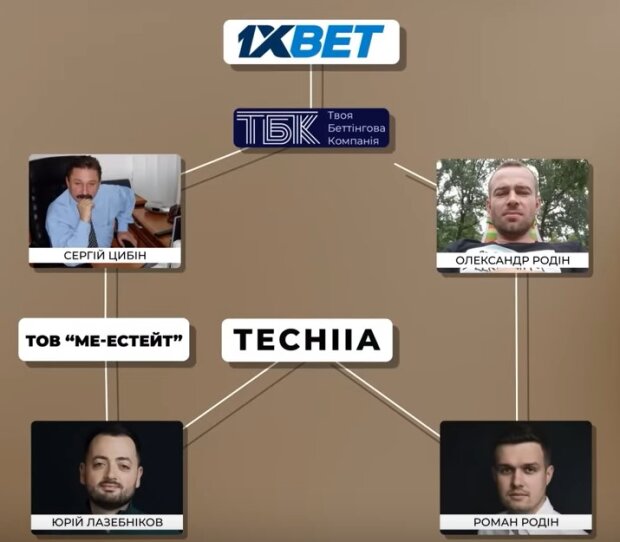 Разом з тим виявилося, що Цибін раніше володів компанією «Ме-Естейт», де директором був Юрій Лазебніков, керуючий партнер українського ІТ-шного та кіберспортивного холдингу «TECHIIA». Холдингу, який минулого року офіційно заявляв про співпрацю та спільний проект з 1хБет і навіть оголошував «іксів» партнерами на 2021 рік. У «Течії» головним юристом працює Роман Родін, чий брат Олександр керує цією «ТБК», що й отримало ліцензії в Україні для 1хBet.