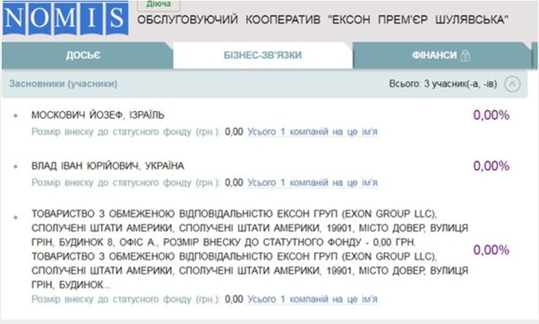 Продаж проводився через обслуговуючий кооператив ОК «Ексон Прем'єр Шулявська» (ЄДРПОУ 41290431), засновниками якого є Йозеф Москович, Іван Влад та зареєстрована в штаті Делавер (США) компанія Exon Group LLC (дані YouControl). Така схема дозволяє обійти класичну систему контролю: немає договору про участь у фонді фінансування будівництва, немає страхування ризиків, немає гарантій.