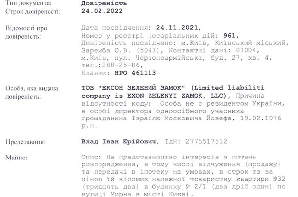 Аналогічна довіреність була видана Івану Юрійовичу Владу на квартиру №32.