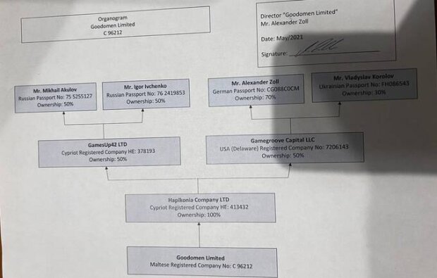 А як співвласник цих офшорок значаться всі наші давні знайомі - Івченко і Акулов через GAMESUP42 LTD і Цоль з Корольовим через GameGroove Capital.