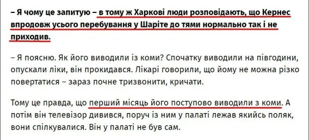 Зазначимо, що Геннадій Кернес провів у німецькій клініці "Шаріте" три місяці – з 16 вересня до 17 грудня 2020 року. І перший місяць (з середини вересня до середини жовтня) за новою інформацією Павла Фукса Харківський градоначальник перебував у комі. Що доводить чергову брехню олігарха, готового на все заради досягнень тієї чи іншої мети.