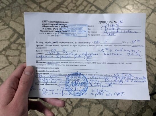 Учитывая, что абсолютно вся информация со стороны Перова, касающаяся этого адреса, манипулятивна и направлена исключительно на достижение его личных целей, в частности, желании работы у департамента культурного наследия КГГА, можно предположить, что сообщения, растиражированные в отдельных СМИ о якобы его избиение является ничем иным, как манипуляцией со стороны псевдоактивиста. К таким выводам приводит анализ медицинской справки. Указанные в ней телесные повреждения исключают активные физические действия, совершенные Перовым на следующий день. Речь идет, в частности, о быстром перетаскивании под фотокамеры огромной дубовой глыбы.