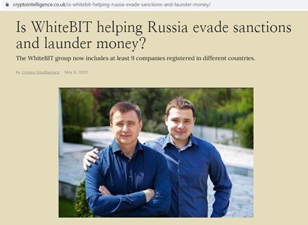 Но вернемся к криптобирже WhiteBIT, которая позиционирует себя как украинская компания. В феврале 2023 года Высший антикоррупционный суд обязал Национальное антикоррупционное бюро Украины расследовать возможный незаконный вывод средств из страны через биржу WhiteBIT и ее связи с рф.