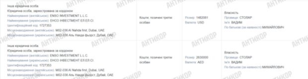 Вадим Столар в Украине имеет связь с несколькими строительными компаниями. Одна из них Enso group. И хотя он долгое время отрицал то, что связан с ней, в Дубае он зарегистрировал фирму с таким же названием. Информацию о компании депутат внес в свою декларацию как народный депутат.