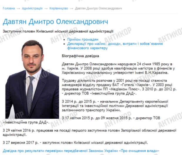 Если первая фамилия вам показалась знакомой, то вам не показалось. Давтян — бывший заместитель председателя Киевской городской государственной администрации. На этой должности он работал с 2017 по ноябрь 2019 года. Он сын известного харьковского бизнесмена, который также возглавляет армянскую общину, в которую в частности входит экс-министр внутренних дел Арсен Аваков.