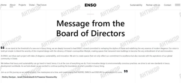 По данным официального сайта Enso investment L.L.C. директорами компании являются Дмитрий Давтян, Джанак Чандраканс и Прасанна Висвамурси.