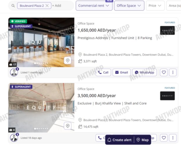 По данным сайтов недвижимости в Дубае, арендовать офис в Boulevard plaza 2 в зависимости от площади можно, например, за 450 000 долларов в год, или же даже и за 950 000 долларов. Как рассказал журналистам «Антикора» местный брокер, более элитная офисная недвижимость может быть только в Бурдж Халифе. «Но большинство богатых клиентов обычно выбирают здания напротив Бурдж Халифы. Ведь если ты арендуешь или живешь в нем, ты его не видишь. А если у тебя офис в Boulevard plaza, то ты можешь видеть и башню, и Dubai mall и этот вид действительно стоит бешеных денег», — говорит он.