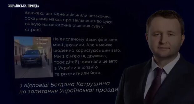 Богдан Катрушин выиграл суд и восстановился в должности, с которой его уволили. 10 апреля 2023 года Шестой апелляционный административный суд подтвердил решение Киевского окружного административного суда, восстановившего Катрушина в должности. Из которой его уволили 1 апреля 2022 года.