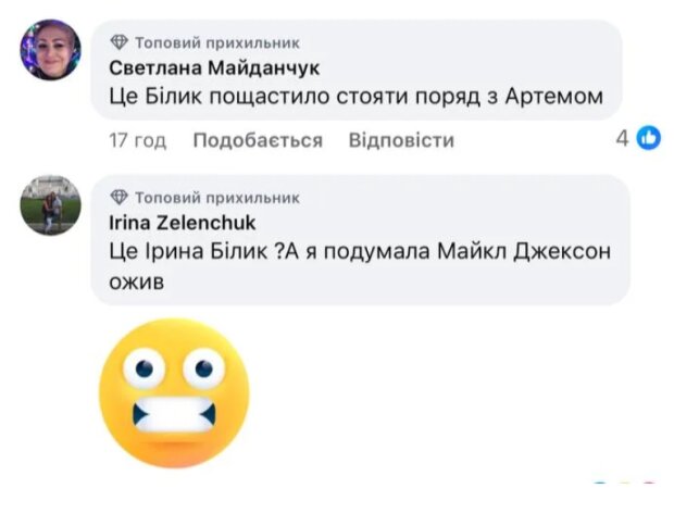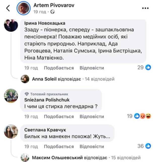«Ззаду – піонерка, спереду – зашпакльована пенсіонерка». «Це Ірина Білик? А я подумала, Майкл Джексон ожив», «Билык на менекена похожа! Жуть…», - пишут отзывы фолловеры Артема Пивоварова в сети.