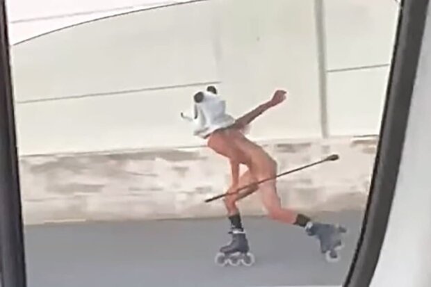 Событие случилось в городе Колумбус штате Огайо. На камеру запечатлели обнаженного на мужчину, который едет по восьмиполосного шоссе. На его голове была маска плюшевой панды, а в руке клюшка для гольфа.