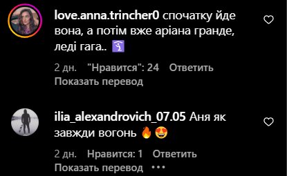 «спочатку йде вона, а потім вже аріана гранде, леді гага..», «Аня як завжди вогонь», - пишуть українці.