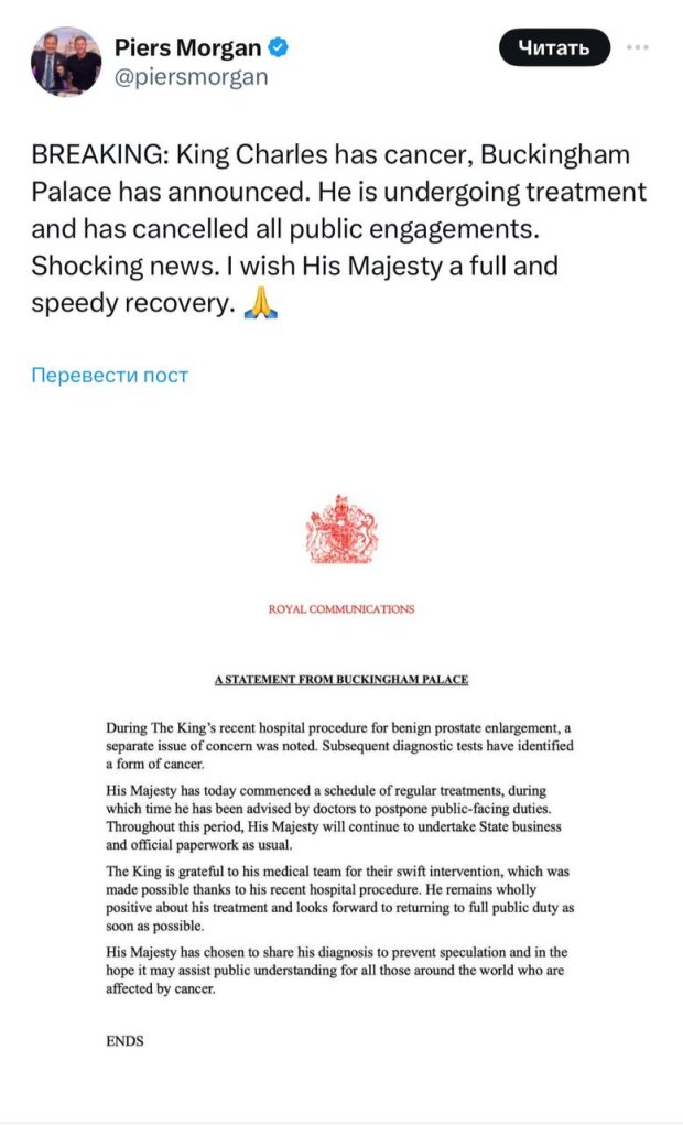 ПідписатисяАле вже 5 лютого світ був шокований новиною, що короля Чарльза III спіткала смертельна хвороба - рак.